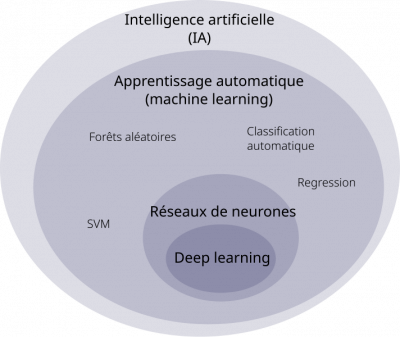 L'apprentissage profond (deep learning en anglais) utilise de multiples couches de neurones entre les entrées et les sorties, d'où le terme « profond ».